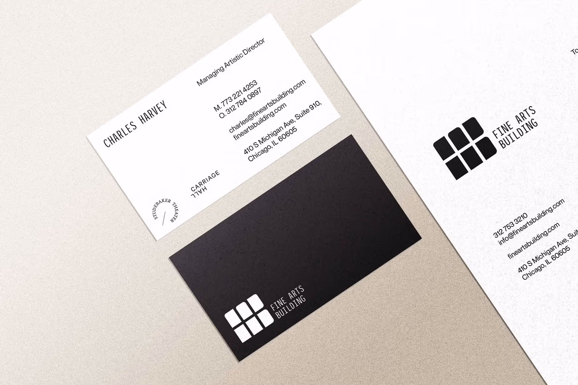 For the brand´s system we also designed the logos for the 2 theatres: Studebaker and Carriage Hall.